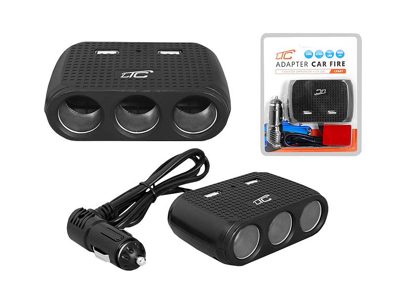 Adapter CAR FIRE LTC 3 gniazda 120W/2xUSB 1A/12/24V AS7C czarny.