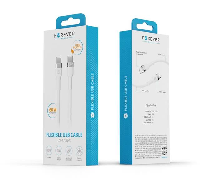 FOREVER KABEL FLEXIBLE USB-C-USB-C 2,0m 60W BIAŁY
