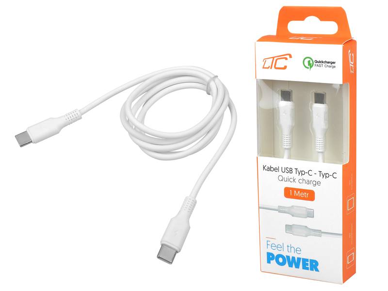 Kabel TypeC - TypeC, 1m, biały, Quick Charge.