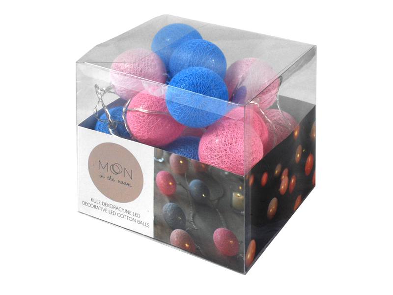 Kule dekoracyjne LED MOON in the room, 20 sztuk x 6 cm, niebieskie + różowe + pudrowy róż.