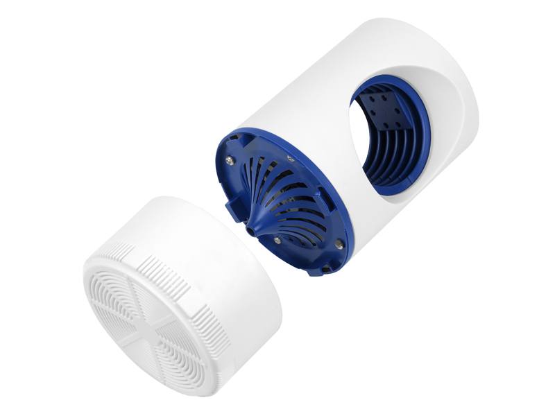 Urządzenie zamknięte jest w dwukolorowej obudowie wykonanej z wysokiej jakości tworzywa sztucznego. Połączenie bieli i fioletu sprawia, że produkt wpasuje się idealnie do każdego wystroju wnętrz. Zaokrąglony kształt z minimalną ilością ostrych krawędzi sprawia, że urządzenie wygląda elegancko i będzie się świetnie prezentować na wszelkiego rodzaju półkach, stolikach i podłogach. Design urządzenia jest w całości funkcjonalny. Obszerny wlot naświetlony promieniami UV zwabia owady i wciąga je do wnętrza pułapki.