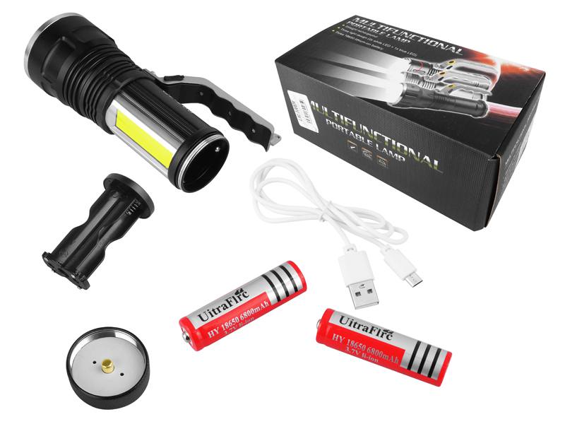 Latarka ręczna szperacz LED 5W/COB 3W, SOS, ALU, 800lm, ZOOM, akumul.2x18650, kabel MicroUSB.