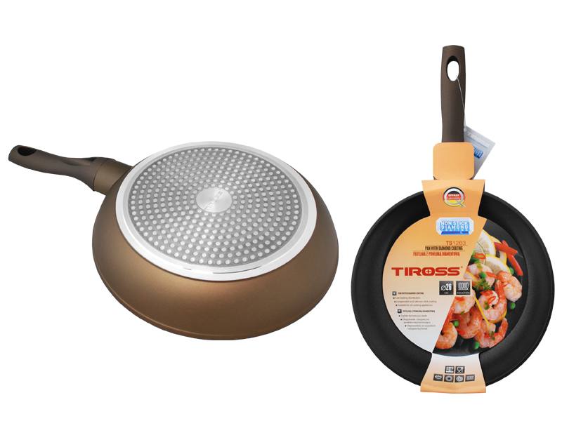Tiross TS1263 to wysokiej jakości patelnia z powłoką diamentową, o średnicy 26 centymetrów. Patelnię te cechuje bardzo szybka i równomierna dystrybucja ciepła, bezpieczna i długotrwała powłoka nieprzywierająca oraz kompatybilność ze wszystkimi rodzajami kuchenek.