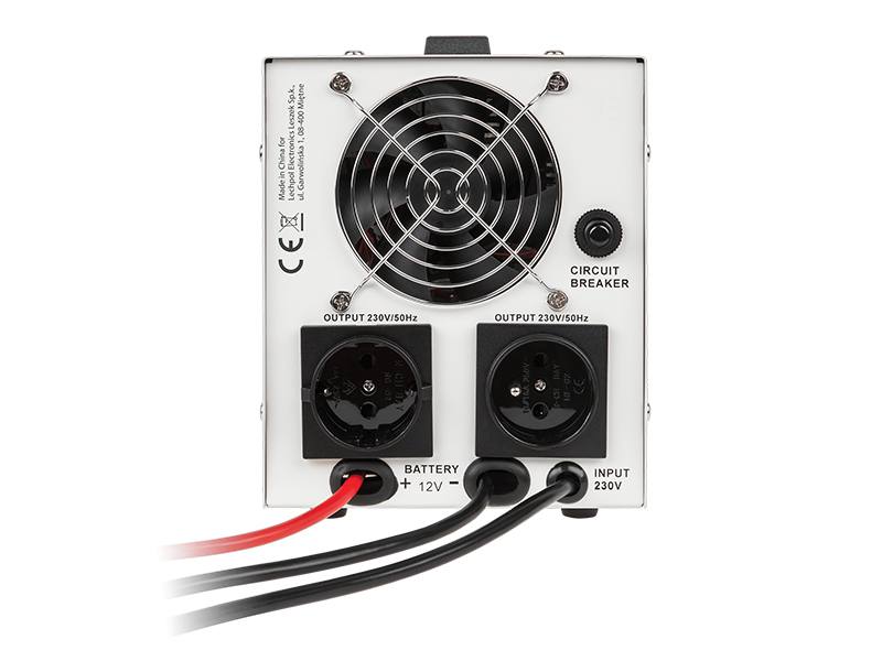 Awaryjne Żródło Zasilania Kemot PROSINUS-800 przetwornica z czystym przebiegiem sinusoidalnym i funkcją ładowania 12V 230V 800VA/500W biała