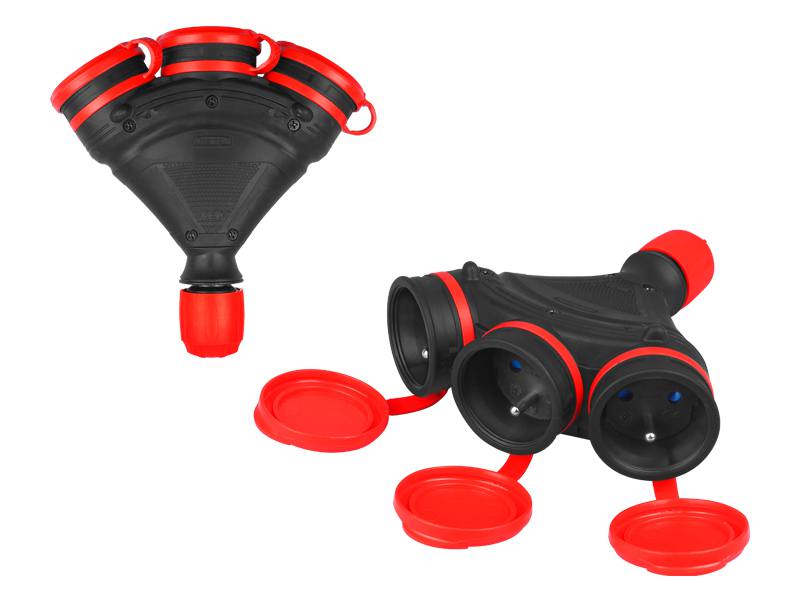 Szczelne gniazdo umożliwiające podłączenie kilku urządzeń na jednym kablu zasilającym.
