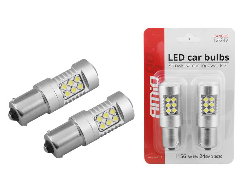 LED AMIO CANBUS 24SMD 3030 1156 (P21W) White 12V/24V, komplet 2szt.