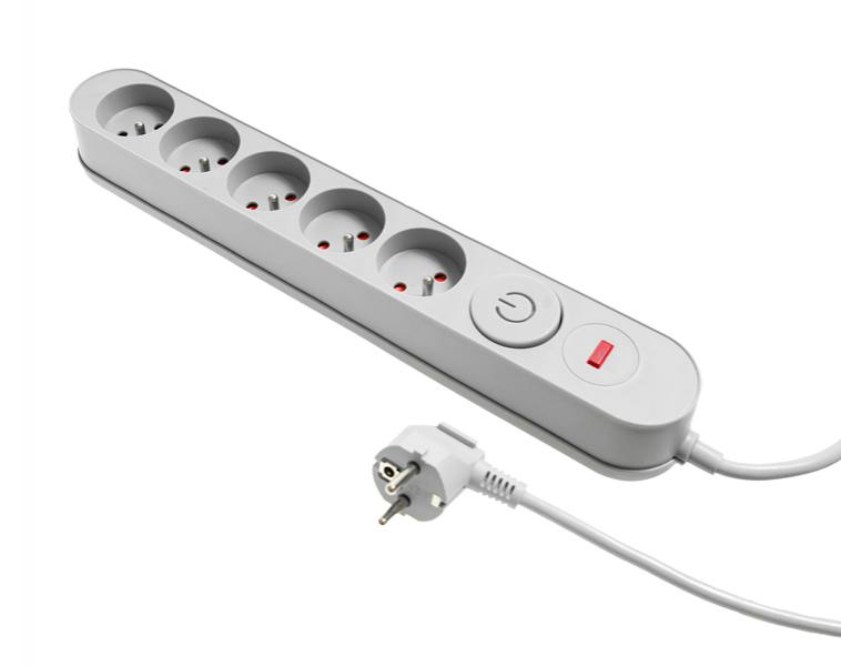 Listwa zasilająca z układem przeciwprzepięciowym, 5 gniazd 5m, włącznik, szara