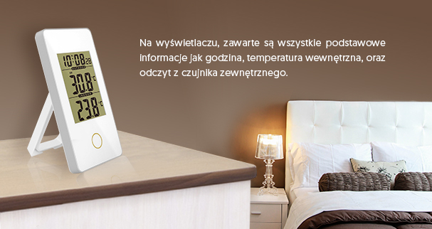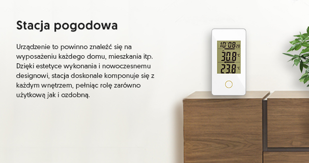 Stacja pogody z czytelnym, wyświetlaczem i pomiarem temperatury. Urządzenie to cechuje się niezwykłą precyzją pomiarów, niskim poborem energii, najwyższą jakością wykonania oraz nowoczesnym i estetycznym designem.