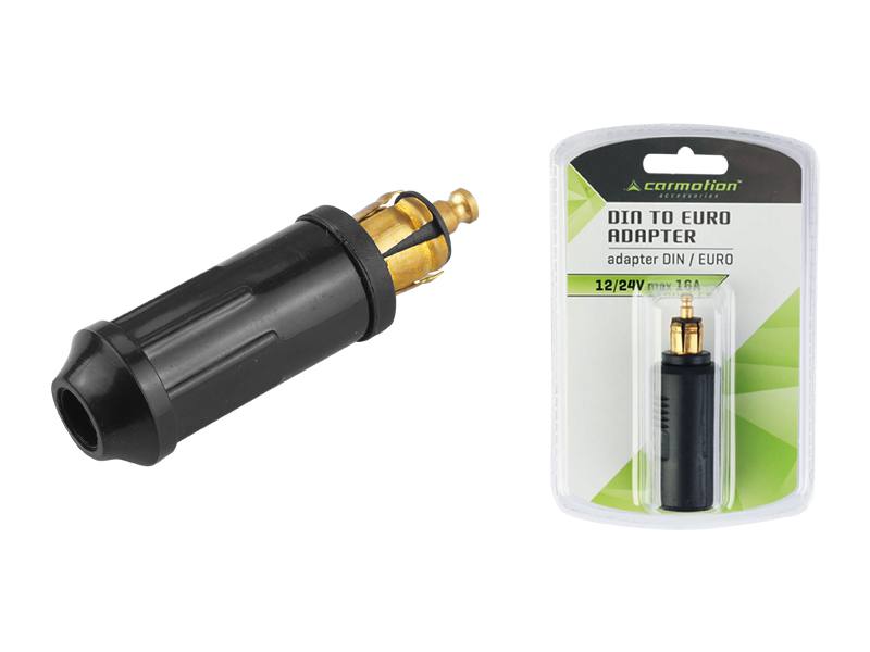 Poręczna przejściówka, pozwalająca podłączyć urządzenia elektryczne do gniazda samochodowego DIN 12/24 V. Wtyczka nie jest wyposażona w bezpiecznik, zalecane podłączenie urządzeń przez bezpiecznik.