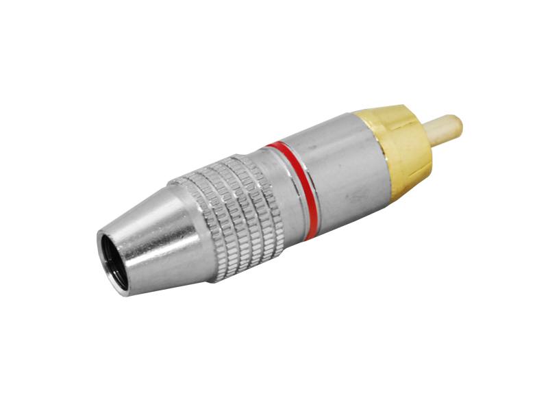 Doskonałej jakości wtyk RCA w kolorze czerwonym. Wtyk przeznaczony do montażu na kabel, gwarantuje doskonałe przewodnictwo sygnału, nie powodując zakłóceń czy zniekształceń w przesyłanym sygnale.