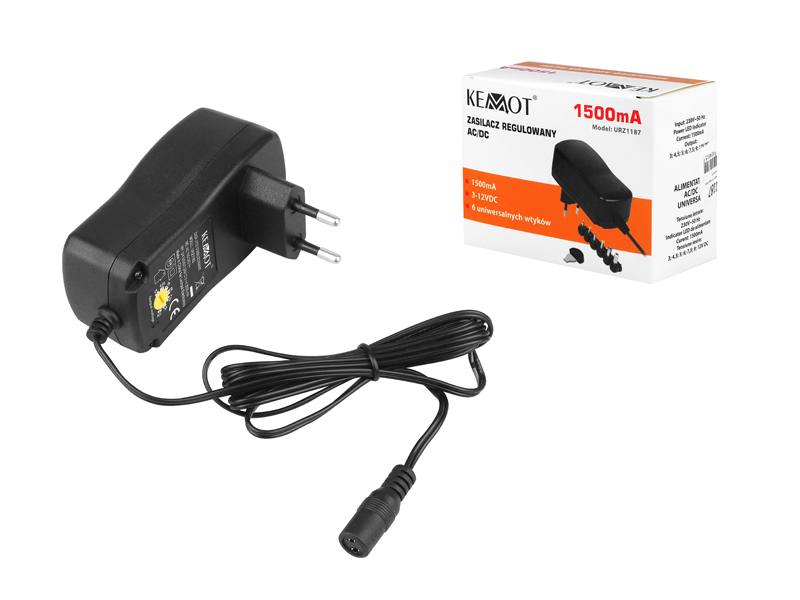 Zasilacz stabilizowany z regulacją 3-12V 1500mA Kemot.