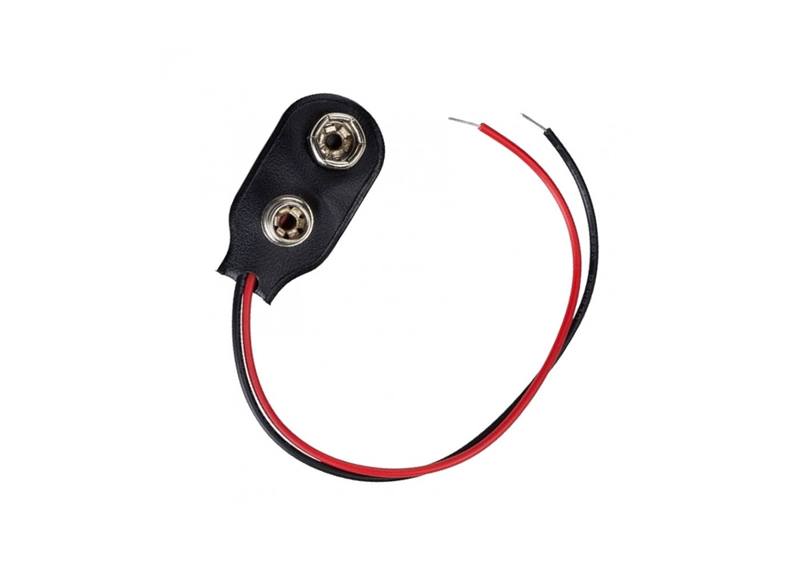 Klips przeznaczony do baterii 9V, z wyprowadzonymi kablami do montażu.| Klips | Bateria 9V |